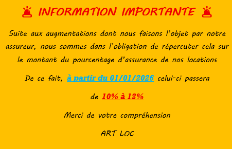 ART LOC décline toutes responsabilisées en cas d’accident.